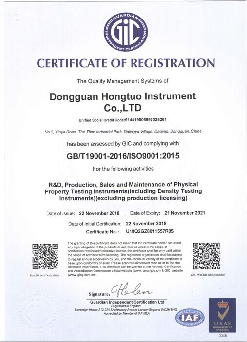 宏拓儀器通過ISO9001:2015質(zhì)量體系管理認(rèn)證,通過國家計(jì)量測(cè)試中心全面質(zhì)量與性能檢測(cè),獲得國家計(jì)量器具型式批準(zhǔn)CPA證書,參與起草制定: 【GB/T 1040.1-2025塑料 拉伸性能的測(cè)定】、【GB/T 1634.1-2025塑料 負(fù)荷變形溫度的測(cè)定】、【GB/T 44559.1-2024塑料 硬質(zhì)塑料沖孔性能的測(cè)定】 、【GBT 43139-2023鑄造鋁合金液減壓凝固試樣密度檢測(cè)】......等標(biāo)準(zhǔn)。